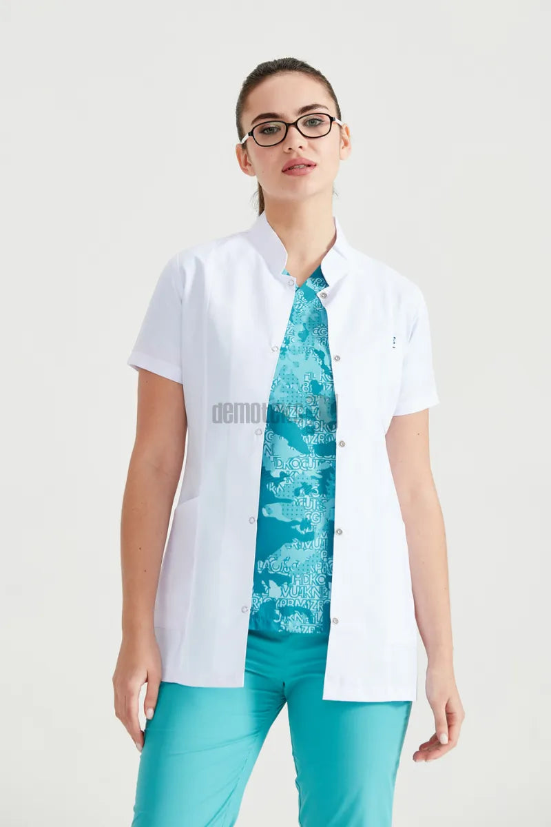 A DEMOTEKS MOODA fehér laboratóriumi köpeny tiszta, tartós és elegáns megjelenést biztosít az egészségügyi és tudományos szakemberek számára. Kiváló minőségű , 65% poliészter és 35% pamut keverékéből készült, így a tartósság, a légáteresztő képesség és a könnyen kezelhető funkcionalitás tökéletes kombinációját kínálja – ideális orvosok, gyógyszerészek, labortechnikusok és diákok számára.